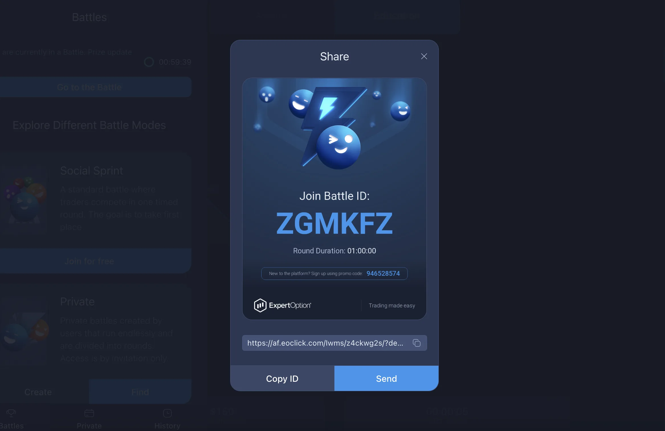 In simple terms, Expert Option private trading battles are closed trading sessions that can be accessed only through a direct invitation or a unique room ID. Participants can join only after basic account verification, which guarantees transparency.